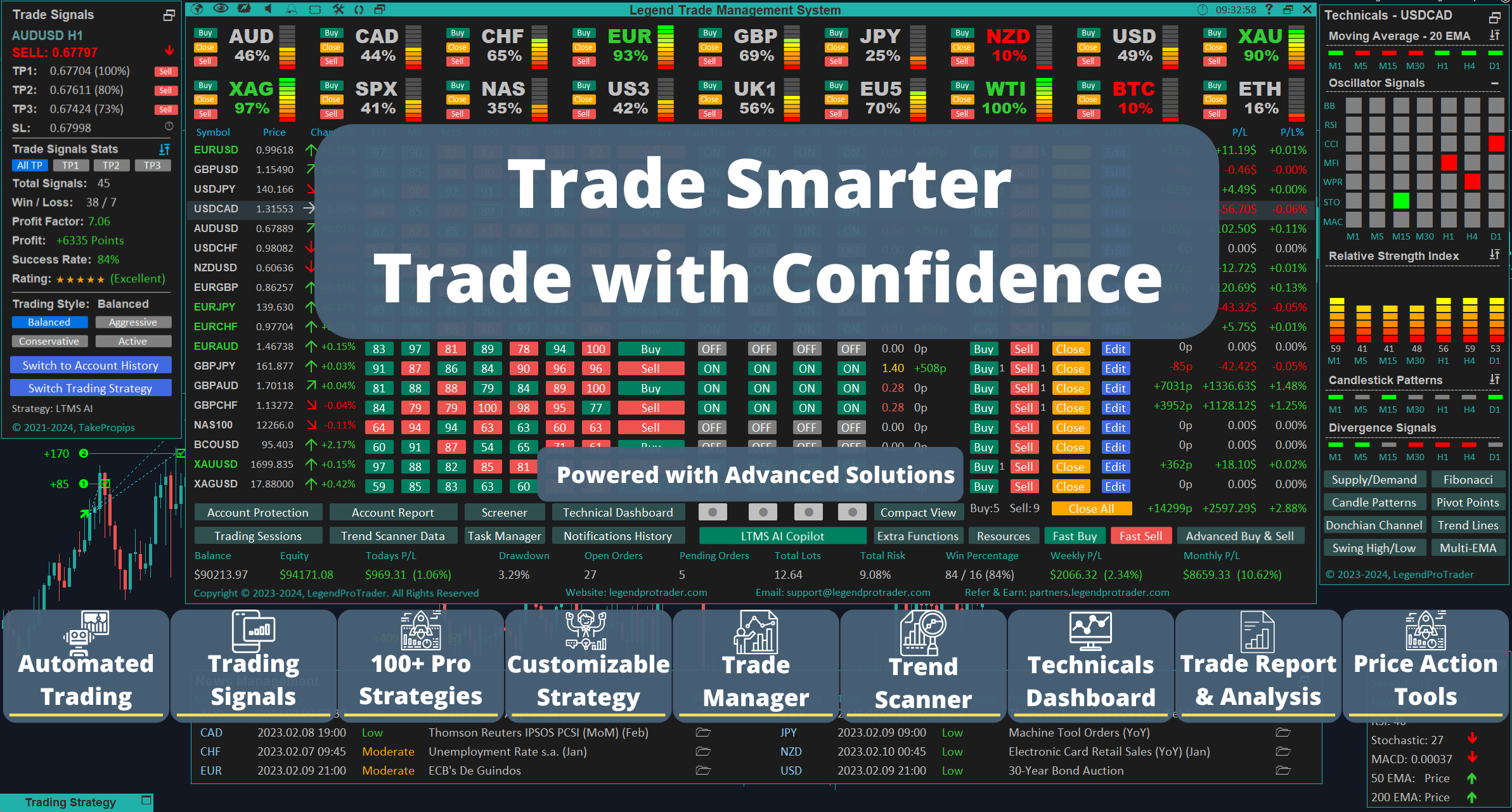 Legend Trade Management System (LTMS) EA is an all-in-one automated trading system that provides you with every tools you need such as automated trading, buy & sell signals, trade manager, technica; analysis tools, fundamental analysis tools using A1, and more!